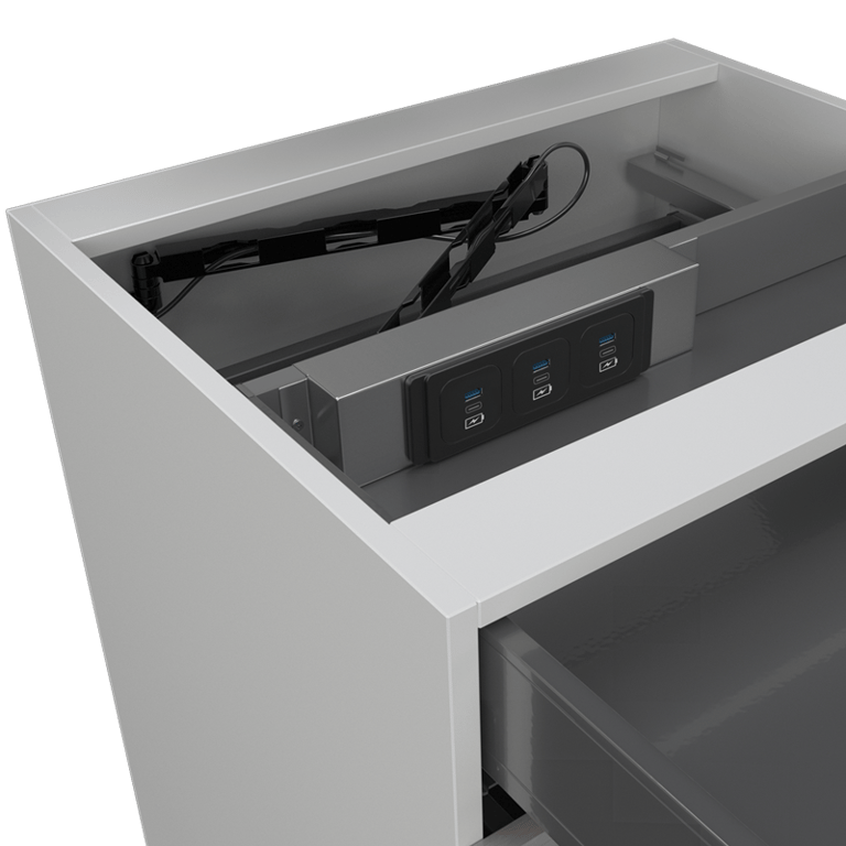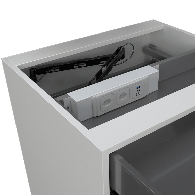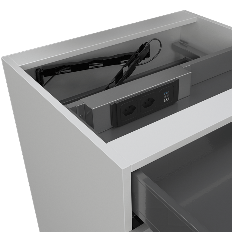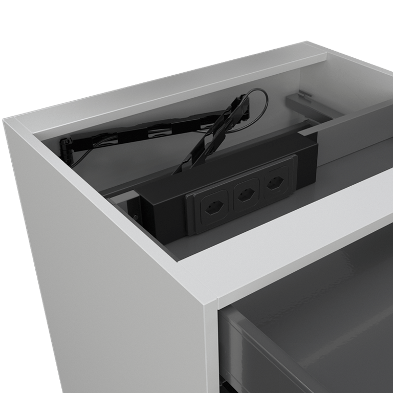 Steckdosenleiste inkl. Montagekit für den Einbau in Schubladen.